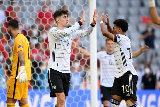 下半场,哈弗茨的表现更为高光。开场不久后,他接到戈森斯的传中包抄推射破门扩大优势。上周刚过完22岁生日的哈弗茨,是德国队报名名单中第二年轻的,仅次于勒夫带来感受欧洲杯气氛的00后穆夏拉。这个进球,也让他以22岁8天的年龄打破名宿奥拉夫·托恩的纪录,成为德国队有史以来在欧洲杯赛场进球最年轻的球员,也是2010年托马斯·穆勒(20岁300天)之后,大赛进球的最年轻德国国脚。哈弗茨进球后,完成了自己参与过的所有赛事都有进球的“满贯”,德甲、德国杯、英超、足总杯、联赛杯、欧联、欧冠、欧国联,这一次是欧洲杯。