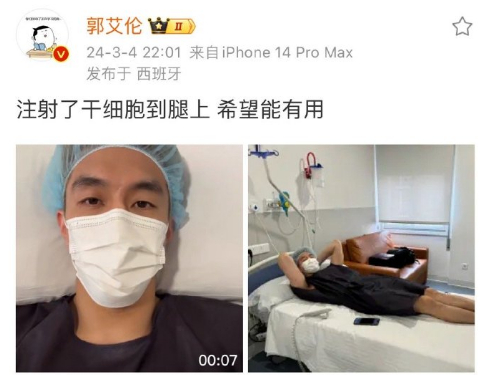 像我们国内球员,大侄子郭艾伦因腿部伤病问题前往西班牙进行干细胞治疗,当时他还通过社交媒体分享了自己的康复进展。